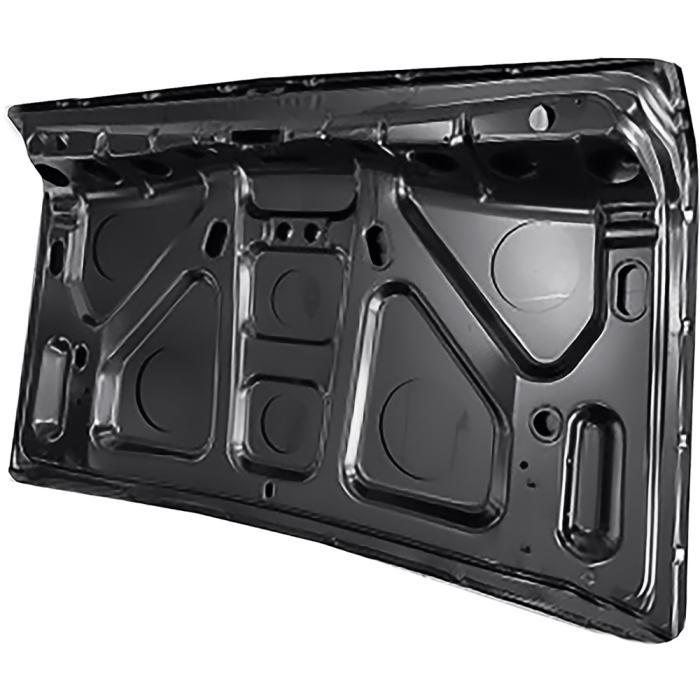 Reproduction trunk lid for 1965 Chevrolet Impala 2-door hardtop models. Each trunk lid is manufactured in stamped steel to original factory specifications featuring correct contours for an authentic appearance and fit. Includes correct understructure replicating the original design. Features correct trunk lock cylinder opening and cut out area for tail light installation. Black EDP coated for rust and corrosion prevention. This is the shorter style lid to fit 2-door hardtop models only. Replaces GM part # 4461753.