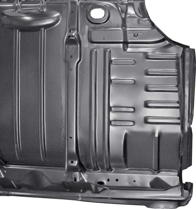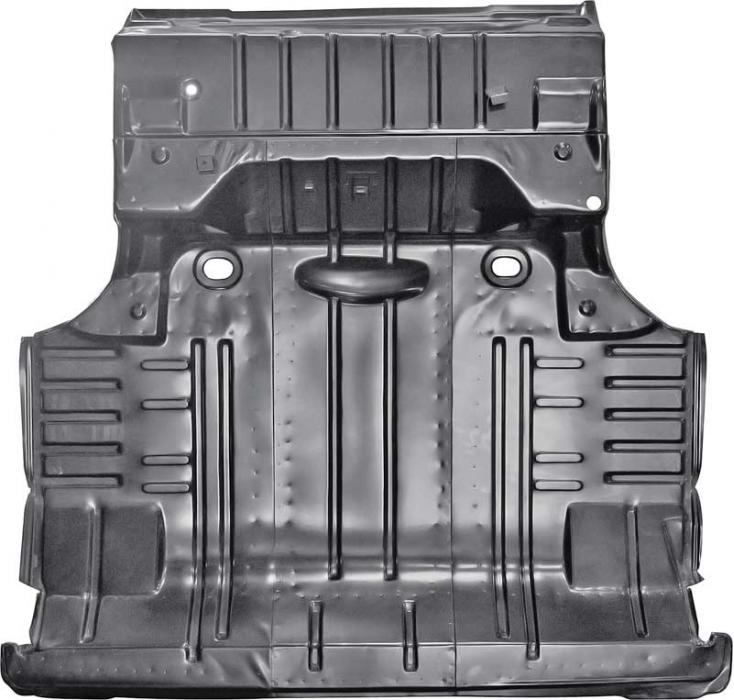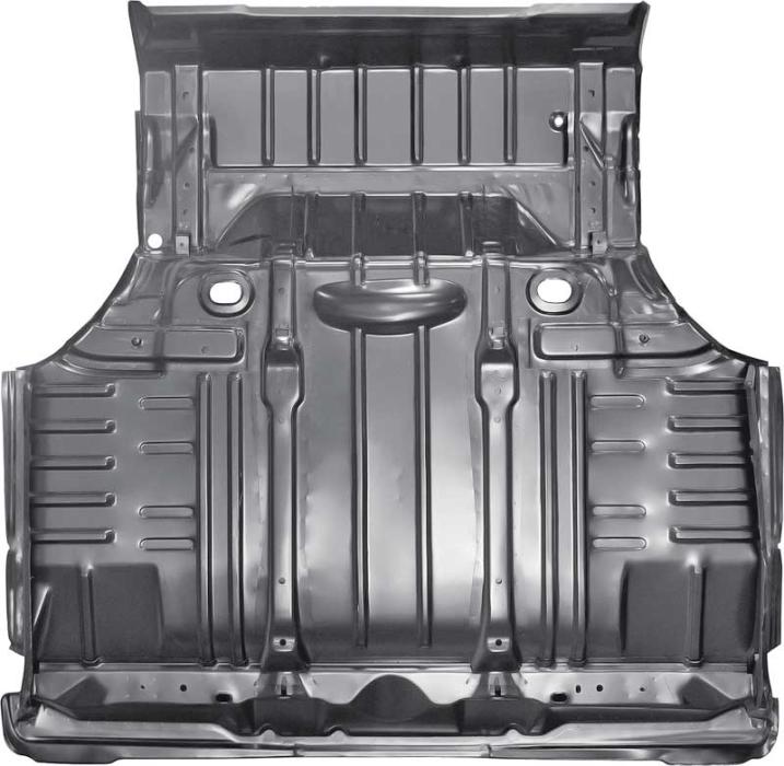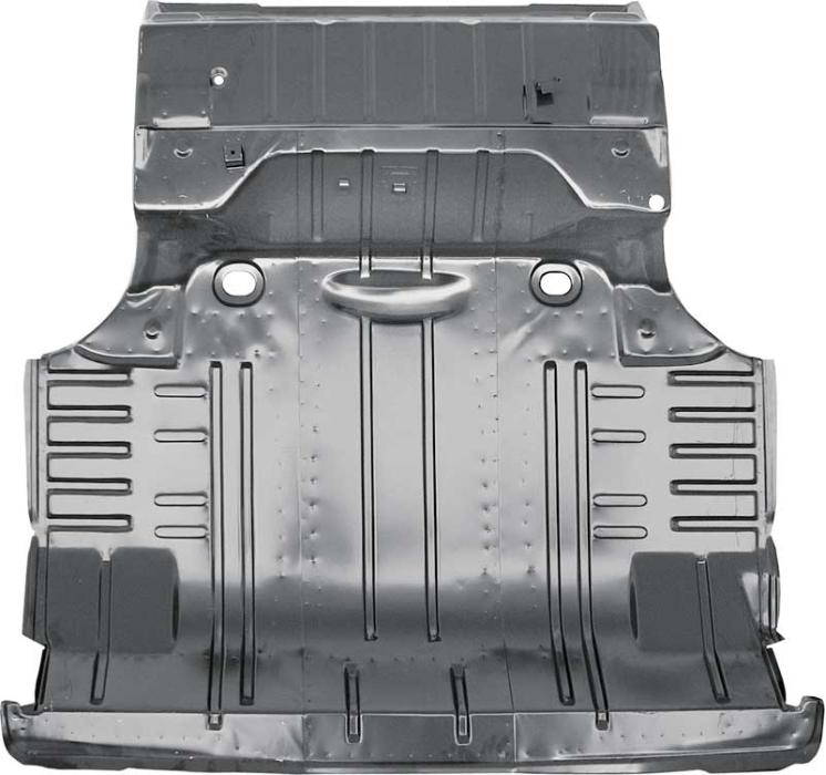 Reproduction of the original trunk floor assembly designed for use with 1966 Chevrolet Impala, Bel Air, Biscayne and Caprice 2-door, 4-door, hardtop, convertible and sedan models. Each complete trunk pan assembly is manufactured in stamped steel to original factory specifications featuring correct contours for an authentic appearance and fit. This trunk pan assembly is just what you'll need to replace the entire trunk floor assembly. Features correct reinforced ribbing with trunk drain holes manufactured to factory specifications.