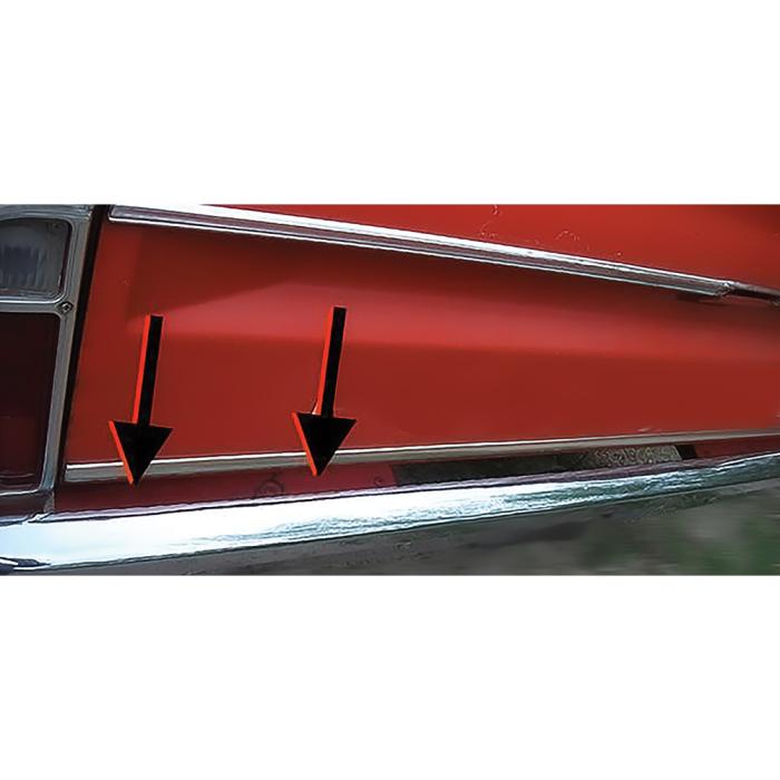 Reproduction of the original gravel shield which is also referred to as a bumper bracket cover for use on the rear bumper. Each gravel shield is ready to install with no hole drilling required. Fits LH driver side.
