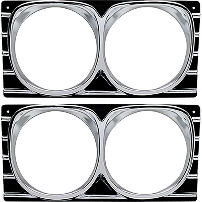 Reproduction of the original headlamp bezels designed for use on 1967 Chevrolet Impala, Bel Air, Biscayne and Caprice models. Each headlight bezel is manufactured in quality stamped aluminum that replicates the original in fit and appearance. Features correctly painted black and silver design for an authentic appearance. Sold in pairs. Includes RH and LH bezels.