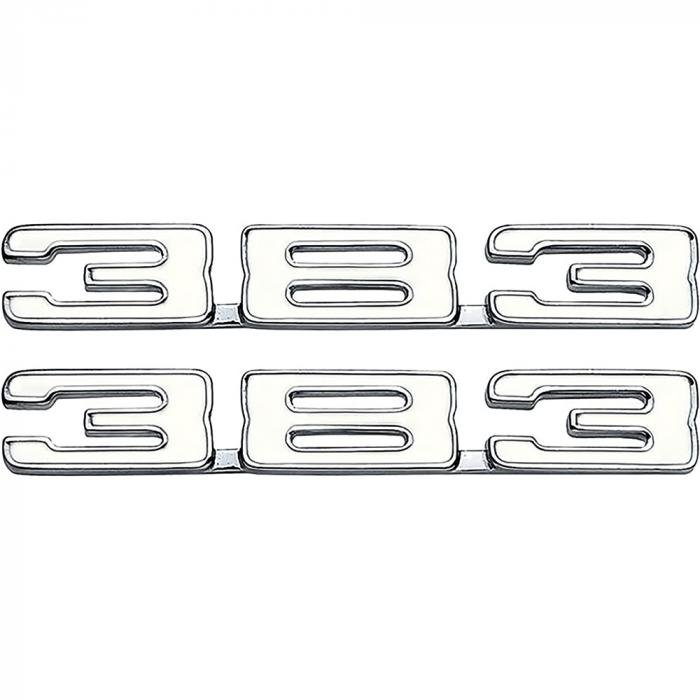 No matter what vehicle you own, these emblems are perfect for any 383 engine transplant! If you've installed a 383 engine in your vehicle, now you can have an early style front fender emblem to match your displacement. Produced in late 60's (1968) design, with correct eggshell white lettering and chrome edging, these are just the thing to put the finishing touch on your engine upgrade. Sold in pairs.