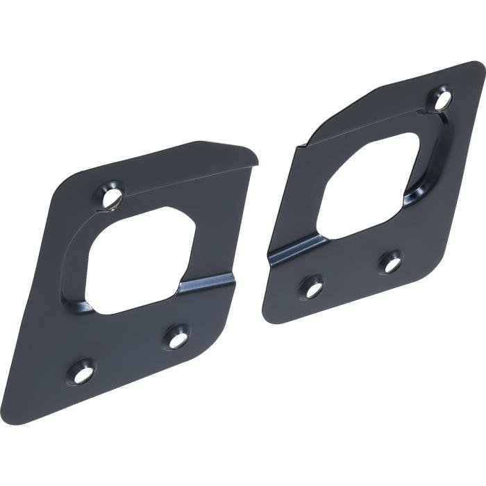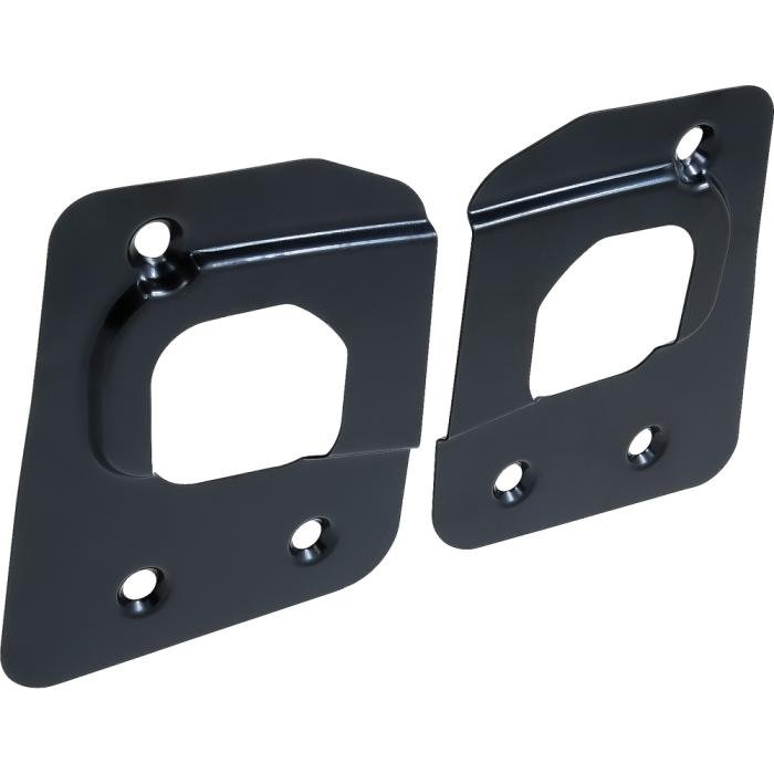 Reproduction stamped steel door latch reinforcement plates or doublers that add strucural support to standard truck doors. These plates double the sheet metal in the area of the door where the body twists to prevent stress cracking around the door latches. These are recommended for use when converting pickup doors for use on Blazer or Jimmy models. Sold as a pair.
