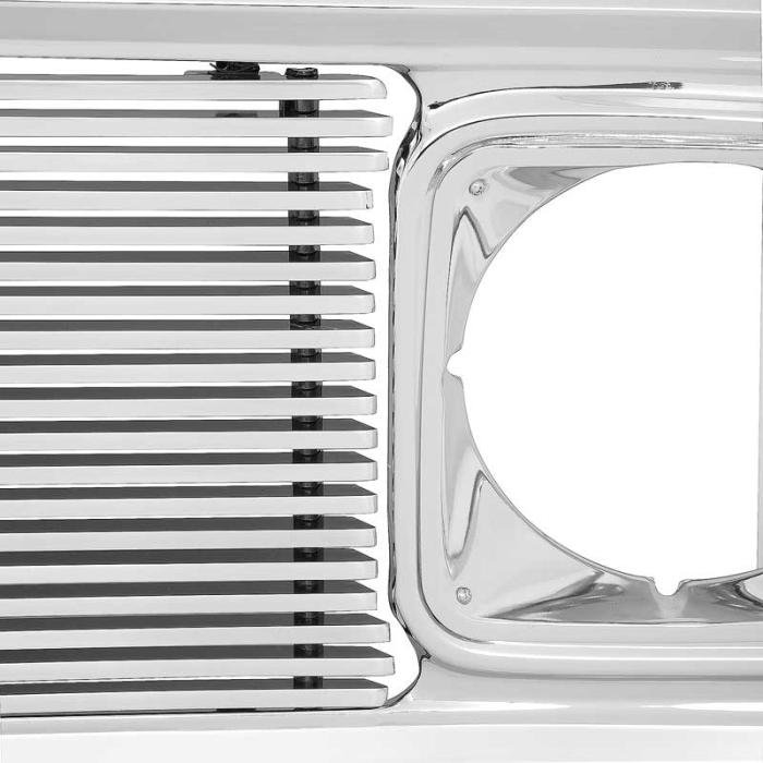 Custom front grill assembly featuring a billet center for 1969-72 Chevrolet truck models. Each grill features a chrome-plated outer grill shell, chrome-plated headlight bezels, and a billet grill insert with 8mm billet insert bars. Will add a unique custom appearance to any 1969-72 Chevrolet truck.