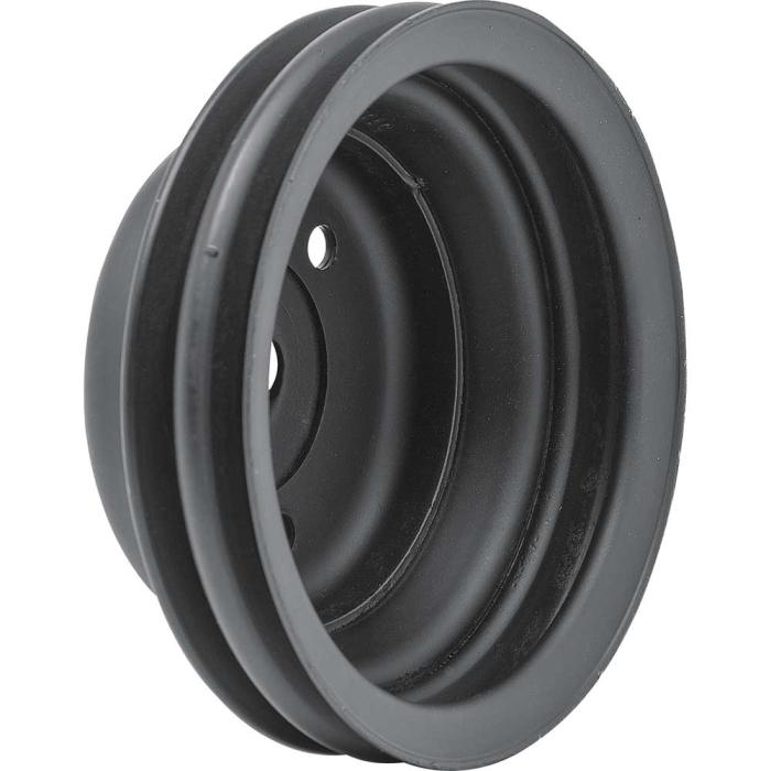 Reproduction 2-groove crankshaft pulley for 1969-81 Chevrolet models with small block and long water pump. Each pulley is manufactured to factory specifications. For use with small block models without air conditioning. 2 Groove design measures approximately 6-7/8".