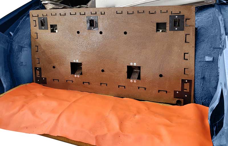 This reproduction partition fits directly behind the rear seat frame and springs to act as a supporting board for the back rest portion of the rear seat. Manufactured with die-cut heavy duty fiberboard with metal reinforcements and brackets riveted in place, as original. This item is often missing or deteriorated after years neglect. Fits a wide variety of GM 2-door coupe and convertible models.