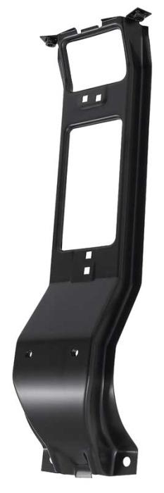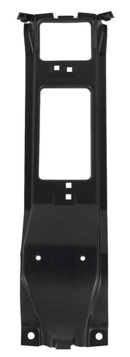 Reproduction hood latch catch support bracket for all 1973-74 Chevrolet C/K series pickup, Chevrolet Blazer, and Chevrolet Suburban models. Also fits 1973-76 GMC C/K pickup, GMC Jimmy, and GMC Suburban. This support bracket features the correct design to accommodate the grill used by the factory for the specified years and models. Features one center support bracket for models without the inner hood release cable. Replaces original GM part numbers # 349295 or # 6270802.