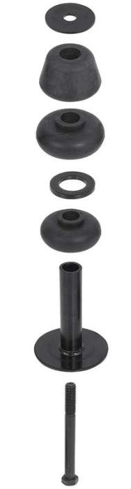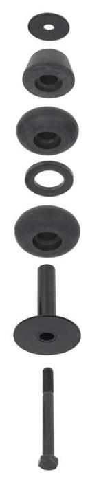 Replacement rear body mount bushing for 1973-80 Chevrolet and GMC Pickup, Blazer, Jimmy, and Suburban 4WD models. Designed to replace worn or deteriorated original mounts, this component restores proper body-to-frame alignment and helps reduce noise and vibration. Each unit includes the upper and lower bushings, bolt, nut, and washers/spacers required for installation. Manufactured to meet OEM specifications for fit, function, and durability.