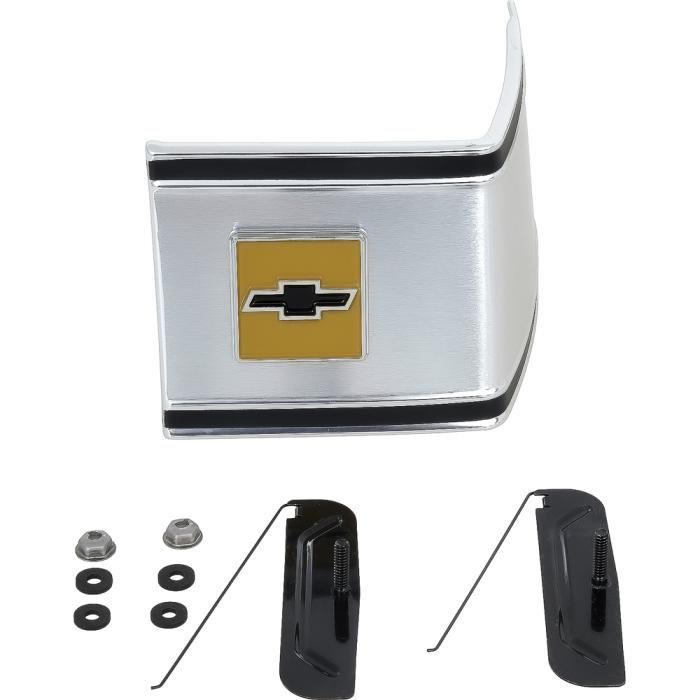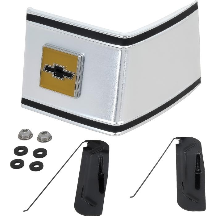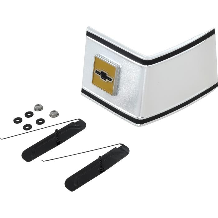 Reproduction of the original cab corner molding for 1973-80 Chevrolet pickup truck models. Each molding is manufactured manufactured to original factory specifications featuring the correct Bow Tie emblem with a brushed finish and black accents Replaces GM# 345125. For use on LH drivers side. Includes mounting hardware.