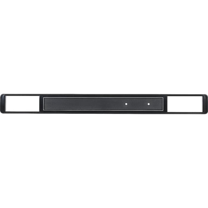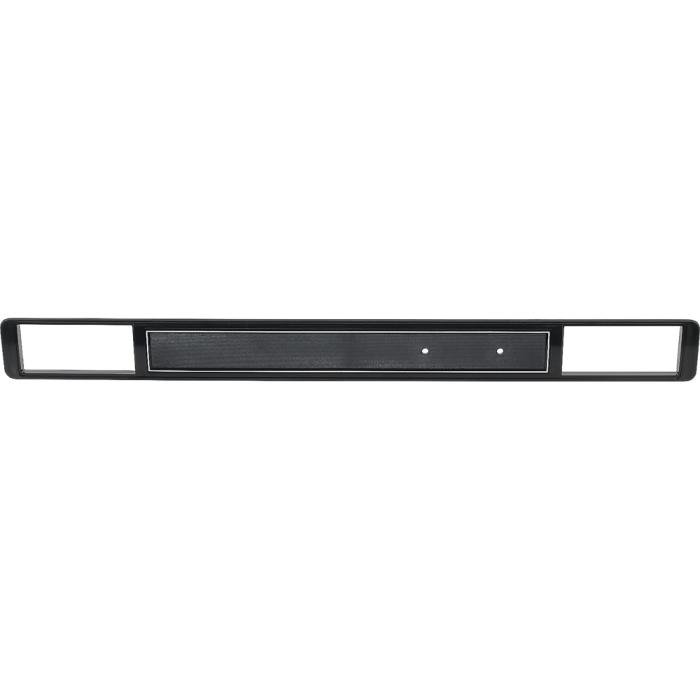 Reproduction dash plate for 1973-80 Pickup, Blazer, Jimmy, Suburban and Crew Cab models with air conditioning. This dash plate is manufactured to factory specifications using high grade plastic and features the correct black finish with a painted argent silver accent stripe. Mounting hardware is sold separately.