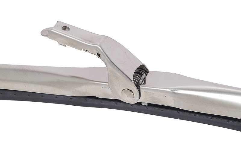 Reproduction of the original silver painted windshield wiper arms and blades designed for 1973-84 Chevrolet and GMC truck models. Each set features 2 silver painted wiper arms and 2 stainless steel wiper blades with correct rubber insert. Arm measures approx. 16" overall. Wiper arms will fit a 5/8" diameter wiper knurl. Preflexed, long frame stainless steel wiper blades measure 16" in wiping width.