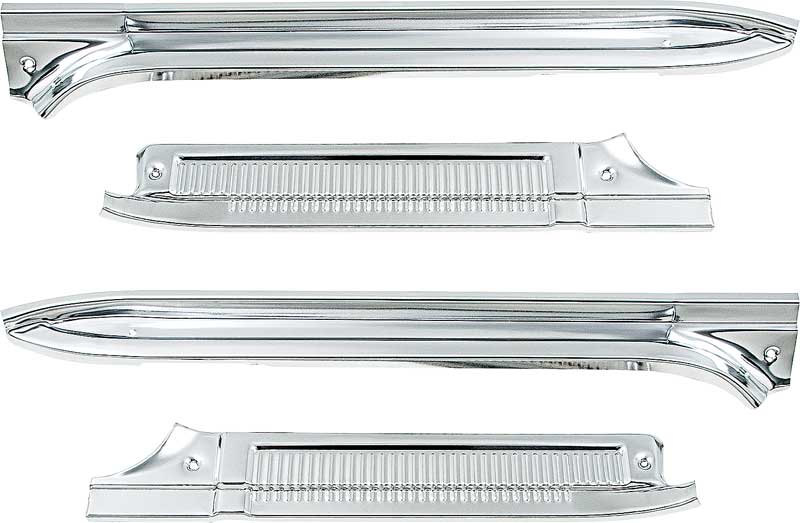 Reproduction of the original style door sill plates designed for use with 1973-89 Chevrolet and GMC crew cab pickup, and Suburban models. Manufactured to factory specifications featuring original style contours with mounting screws included. Fits the front doors on both RH passenger and LH drivers side. 4 piece set.