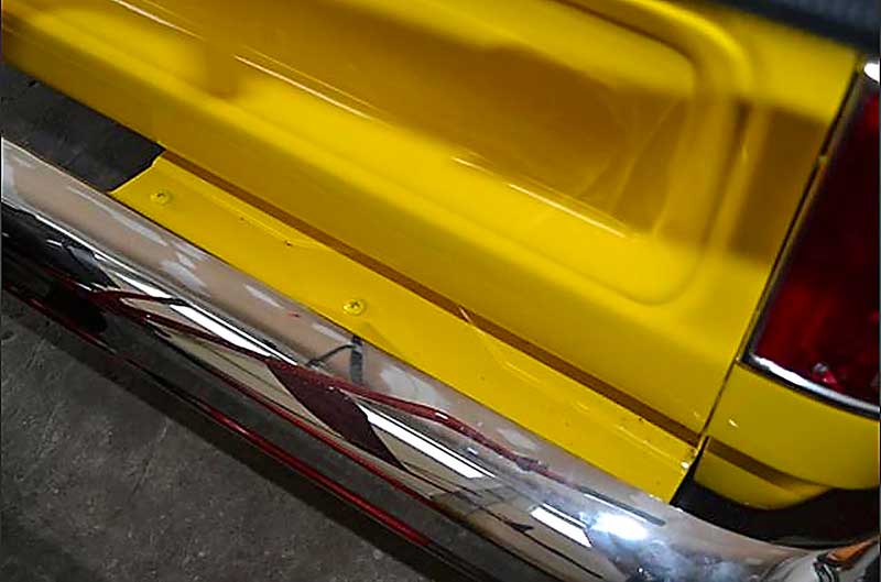 Reproduction rear bumper gravel shield or bumper bracket cover for 1973-91 Chevrolet and GMC Fleetside pickup truck models. Each shield is manufactured to factory specifications featuring a correct design and appearance. Ready to install with no hole drilling required. Mounts to the rear bumper brackets and is a filler between the rear bumper and the bed. Fits RH passenger side.