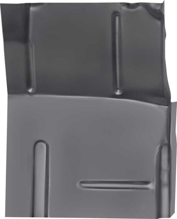 Reproduction of the original front cab floor pan with 1/2 toe board extension for use with all 1973-86 Chevrolet and GMC pickup models and 1987-91 Blazer, Jimmy, Suburban, Crew Cab and Dually models. Each panel is stamped to the original configuration and replaces the rusted or damaged original section of the floor pan. Measures 22-1/2" wide x 19" long with 3-1/2" drop down.