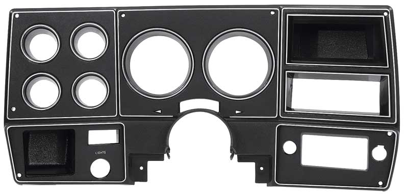Reproduction dash instrument bezel for 1978-80 Chevrolet and GMC pickup, Blazer, Jimmy, and Suburban models as listed. Each bezel is manufactured to correct factory specifications featuring correct openings for gauges, radio, and instrumentation. This bezel is manufactured in quality automotive grade ABS to factory specifications offering an authentic appearance and fit. Without AC.