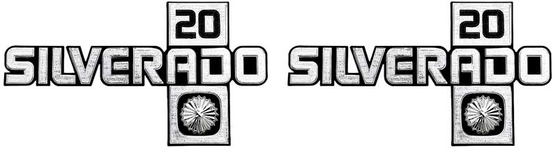 OER reproduction of the "Silverado 20" emblem set that mounts to each front fender of a 1981-86 Chevrolet C20/K20 or 1987-88 R20/V20 pickup or Suburban. This was a high end trim option in 1981-88. Original emblems are obsolete and extremely hard-to-find. Each emblem set is injection molded plastic as original, chrome plated, and painted with correct accent colors. Comes with the mounting nuts for an easy installation. Manufactured with correct markings on the back of emblems for complete originality. Replaces OE GM part numbers 14026452, or 14051852. Sold as a pair.
