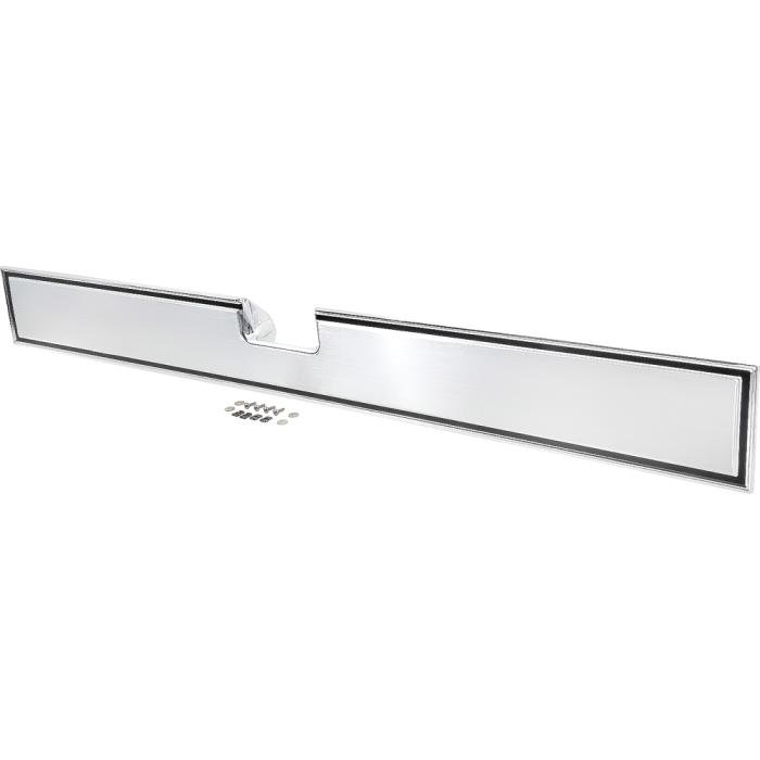 Reproduction rear tailgate molding for 1981-91 Chevrolet and GMC pickup models with the deluxe exterior trim package. Each molding is manufactured in quality stamped aluminum, replicating the original in design, fitment, and appearance. Comes with mounting hardware for easy installation. It does not have emblem holes offering a clean and custom appearance for those who want to. NOTE: Refer to part number # 14027521C (panel with pre-installed "Chevrolet" emblem), or # 14027522 (panel with pre-installed "GMC" emblem).