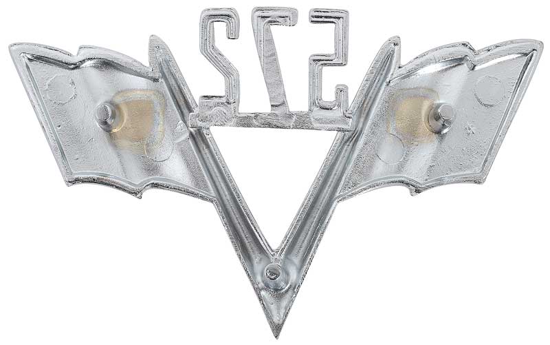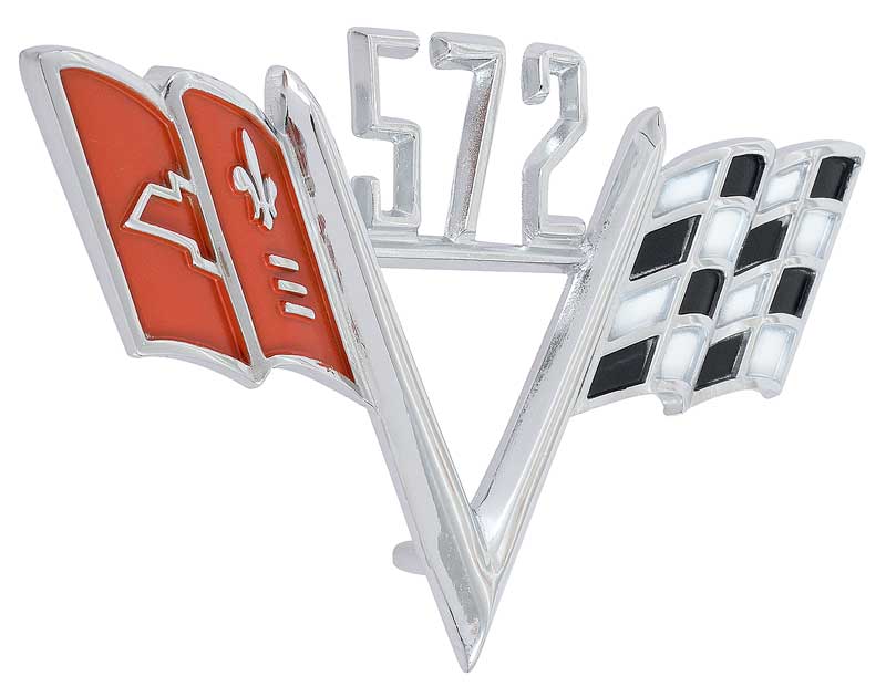 You've customized everything from the interior to the paint to the engine, now you can show off just what's lurking under the good with this 1967-style custom V-Flag emblem. This V-Flag emblem is intended for use on vehicles equipped with 572 engines a nd features 572 in 1964-1967-style lettering.