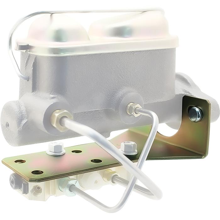 Universal fit proportioning valve/combination valve mounting brackets mount your combination valves either to the frame or directly under the master cylinder, providing access to lines and fittings. Each stamped steel bracket is zinc plated for superior corrosion resistance.