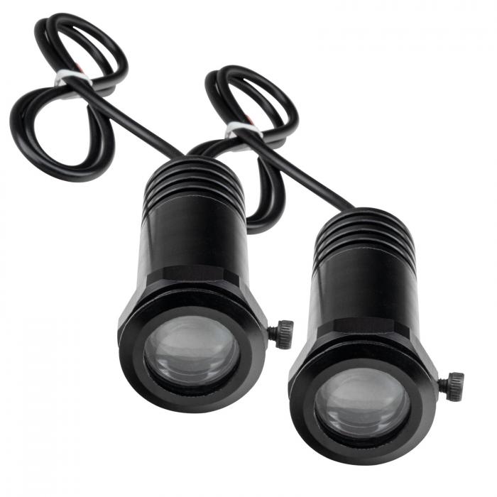 No more guessing if you're parked over a puddle or not! The New ORACLE LED door Projectors re-define the "puddle light" Vividly Projects your favorite logo on the floor surface when you open your vehicle's door, hooks right up to your door's wiring. Q: What is a light GOBO A: Its an acronym for "GO Between Optics". It is an image that can be projected when an light source is introduced. In this case the light source is a high powered LED so the image is crisp, the housing is small, and it puts out very little heat. This product is sure to get some attention with added safety.