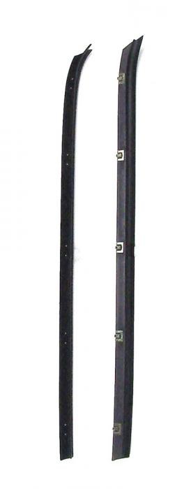 These are the outer beltline moldings that mounts on the left and right doors to sweep the outside of the glass. Our product is made from the original specs and from high quality ozone resistant materials to fit your vehicle.