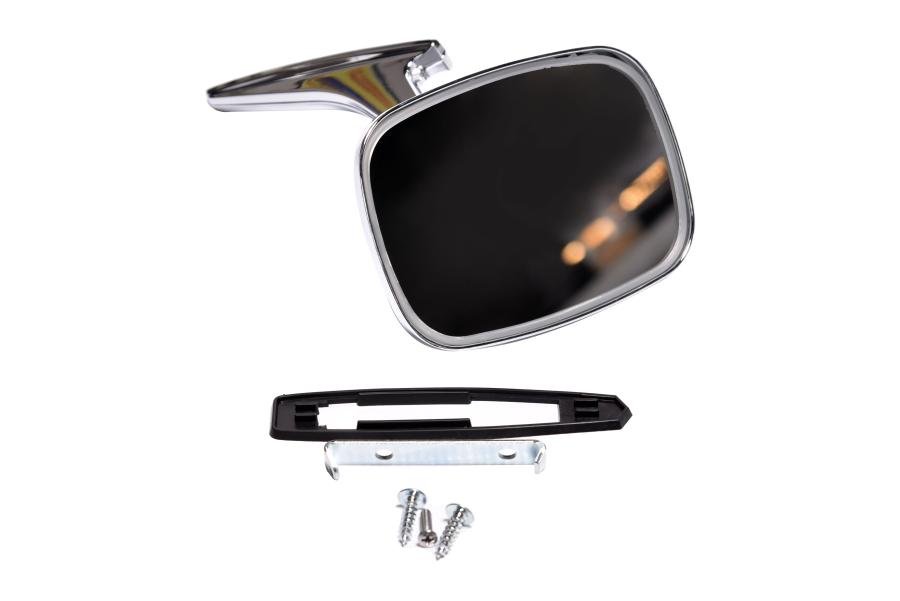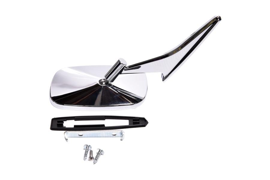 The 1968-1974 GM Car Right Hand Outside Door Mirror with Rib Design is a high-quality reproduction designed to match the factory-installed passenger-side mirror on a wide range of GM vehicles from the late '60s to mid-'70s. Featuring the iconic ribbed base styling, this mirror offers a polished chrome finish and durable construction for long-term use. The mirror head is manually adjustable to provide enhanced visibility and safer lane changes. Whether replacing a missing mirror or completing a matched set with the driver's side, this piece offers an authentic appearance and easy installation.
