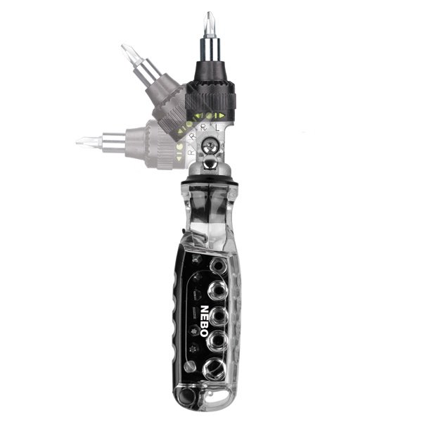 Fit's Perfect In Any Glovebox Reversible Ratchet Mechanism Head Tilts & Locks In 5 Positions 7 Bits & 7 Sockets All In One The 14-in-1 Ultra? Socket comes with 7 screwdriver bits and 5 sockets conveniently stored inside the handle. The head of the Ultra? Socket tilts and locks at 0?, 45?, and 90?, working perfectly as a nut driver for those hard to reach places. The handle is ergonomically designed to add comfort and grip to improve performance. The Ultra? Socket features a reversible ratchet mechanism making it easier to loosen or tighten any bolt. The 14-in-1 Ultra? Socket meets and exceeds ANSI standards and is created to withstand more than the normal wear and tear.