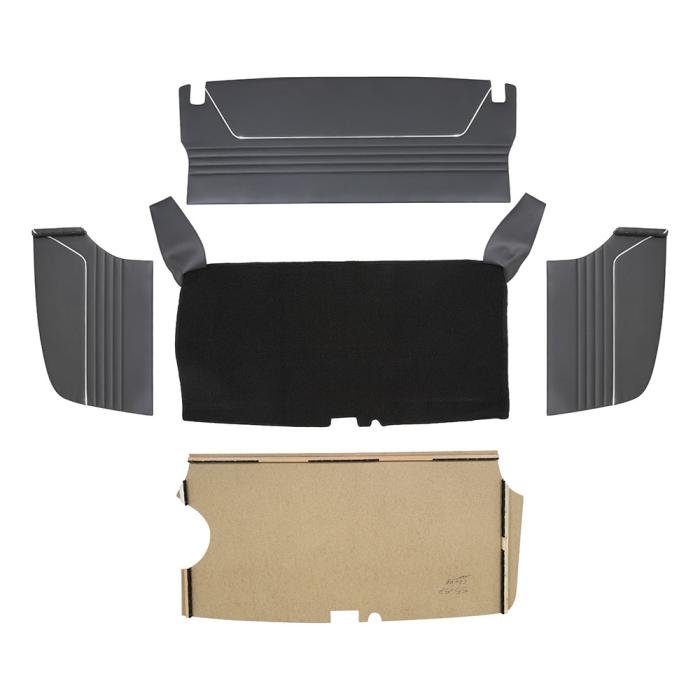 - 4 piece kit includes right and left panels, bulkhead panel and carpet for the trunk floor.