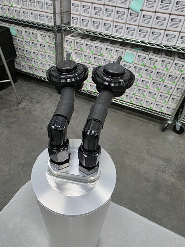 The Vapor Trapper™ can be easily mounted using two 2-1/2” clamps put in line with your fuel tank vent line. Use #6 AN O-ring Boss fitting (barb fittings with a rubber fuel hose or a threaded AN fitting for a more custom installation). Make sure to install the Vapor Trapper™, or at least the inlet line, far above the fuel tank to avoid liquid fuel getting into the filter. Fuel getting into the Charcoal media drastically reduces the performance of this product. If this occurs, please contact us so we can recharge your Vapor Trapper™.