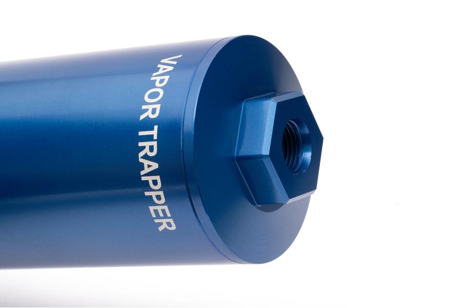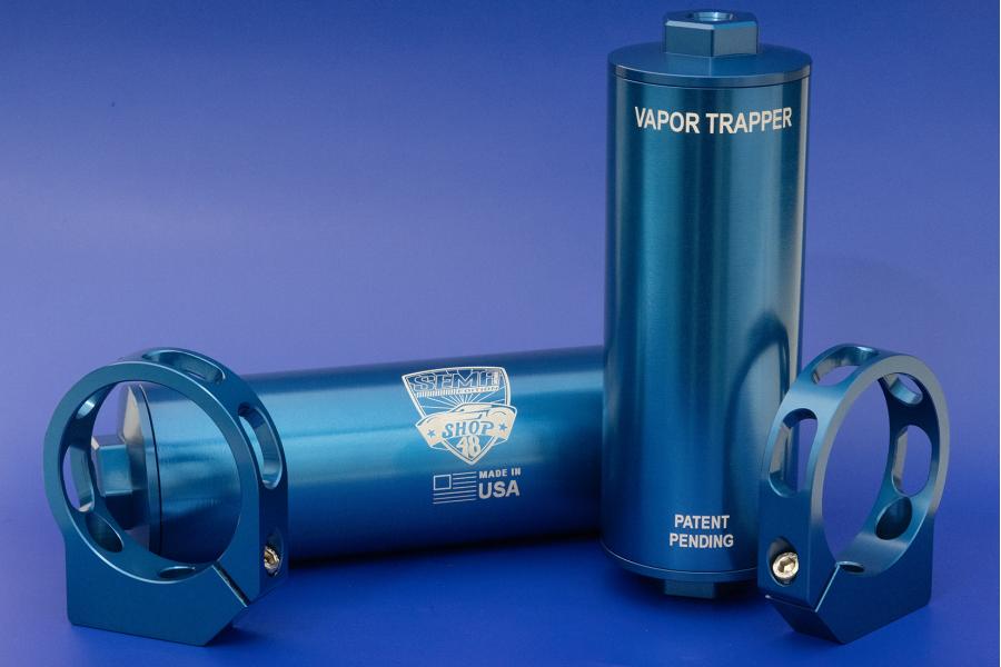 The Shop48 Vapor Trapper™ is a high-quality billet aluminum charcoal canister that eliminates fuel odors from vented fuel tanks. Its specialized charcoal media traps vapors, keeping garages and cabins fume-free.