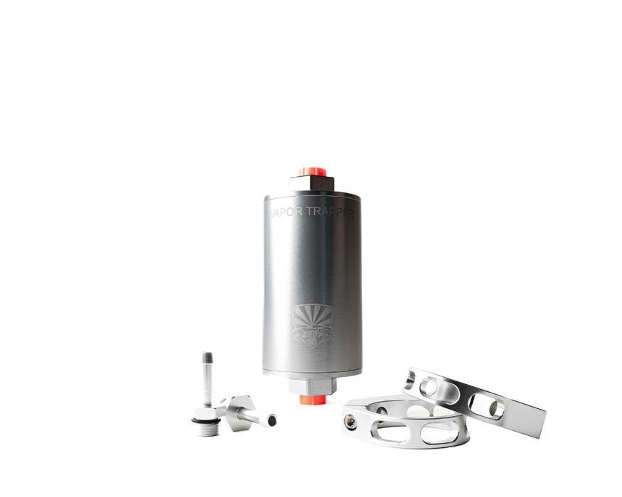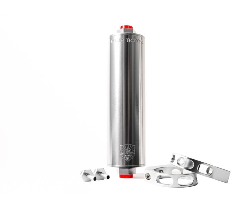 The Vapor Trapper™ can be easily mounted using two 2-1/2” clamps put in line with your fuel tank vent line. Use #6 AN O-ring Boss fitting (barb fittings with a rubber fuel hose or a threaded AN fitting for a more custom installation). Make sure to install the Vapor Trapper™, or at least the inlet line, far above the fuel tank to avoid liquid fuel getting into the filter. Fuel getting into the Charcoal media drastically reduces the performance of this product. If this occurs, please contact us so we can recharge your Vapor Trapper™.